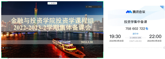 2023年3月30日晚上七点半,304永利集团唯一投资学课程组通过腾讯会议举行了线上集体备课会,公司副经理孙进军副教授、投资系主任胡妍博士、投资与金融工程两系教师汤洪波教授、黄伟麟教授、吴辉凡副教授、龙安芳博士、廖婧琳博士、彭俊华博士、李琰钰博士等16人参加了本次备课会。
