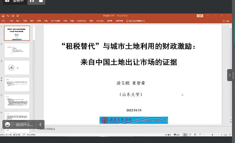 汤教授研究采用土地出让数据,通过空间临近匹配发现商服用地相对住宅用地存在显著的折价,同时检验了租税关联对地方政府土地出让结构的影响,证据表明,当地方政府的收入来源包括一般税收和土地租金(或土地税)时,完善的土地市场可以缓解甚至消除歧视性税收政策对资源配置的干扰。讲座最后,汤玉刚教授就讲座主题与师生进行探讨,现场气氛活跃,互动热烈,参会师生受益匪浅。