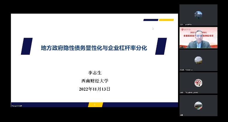 李志生教授分享了题为《地方政府隐性债务显性化与企业杠杆率分化》的最新研究成果。文章基于地方政府债务风险防范与化解、地方政府债务扩张问题、预算法约束下的地方政府债券试点等制度背景,以及地方政府债务对宏观经济与微观企业影响、地方政府债务置换研究等文献进展,考察了地方政府债务置换计划对国有企业以及非国有企业的异质性影响以及其中可能存在的政府隐性担保、市场透明度和融资约束等影响机制。文章研究发现债务置换计划缓解了企业杠杆率分化,债务置换的效应在财政透明度低地区和实体行业中表现更为明显,而且债务置换在缓解非国有企业“短贷长投”问题和提升非国有企业投资效率上也发挥了积极作用,但也在一定程度上增加了企业债务风险。文章提出,在化解地方政府债务风险的进程中,我国应进一步推动隐性债务显性化,通过市场机制提升信贷资源配置效率,确保政府债务的可持续性,助力实体经济高质量发展。蔡卫星教授随后进行了精彩点评。