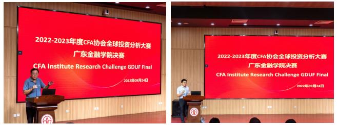 2022年9月24日,由CFA协会与公司联合主办的2022-2023年度CFA协会全球投资分析大赛304永利集团决赛在公司北教103举行。公司经理项后军教授、CFA协会负责人李子斌博士、公司副经理李日新副教授、中山大学岭南公司戴芸副教授、品职教育郭静老师、粤科风投李研老师以及公司教师胡妍博士、李琰钰博士与杨睿博博士出席了本届比赛。