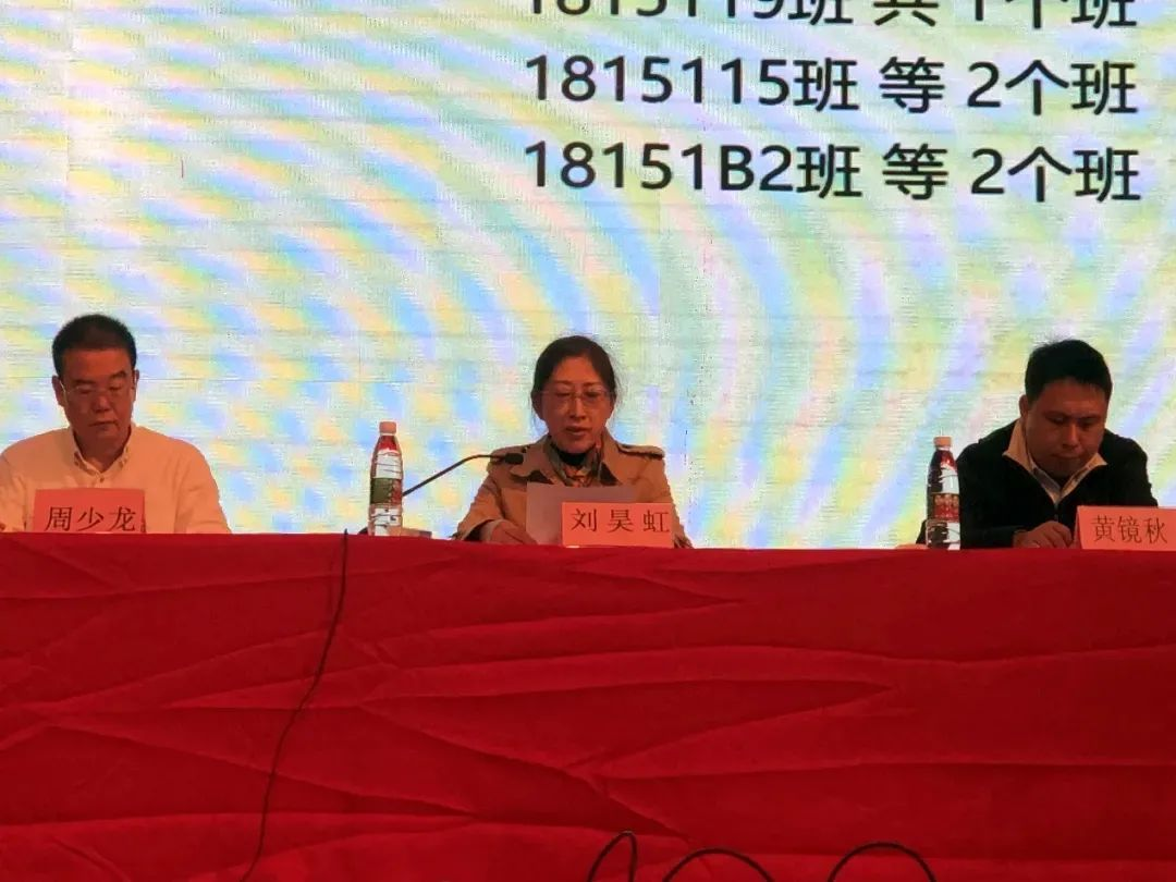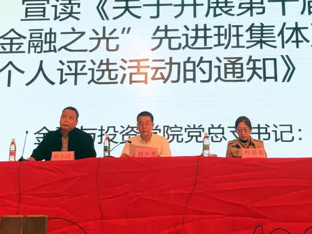 刘昊虹教授发言结束,接着是周少龙书记宣读《关于开展第十届“金融之光”先进班集体及先进个人评选活动的通知》,宣读完后书记也表达了对员工的关心,并叮嘱员工不要因冷空气突袭而受寒,在即将到来的四六级考试中发挥出超常水平。
