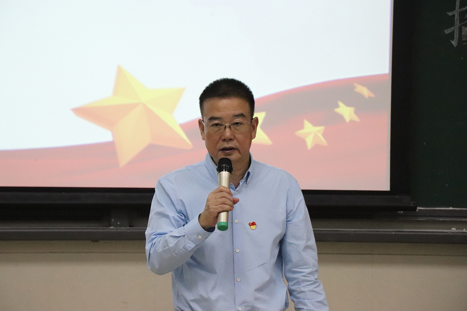 随后,周少龙书记进行讲话。首先,周书记对获奖党员表示了热烈的祝贺,肯定其在生活、学习和工作中发挥的模范作用,并且高度赞扬了他们在思想、政治、行动上始终与党中央保持高度一致,称赞了他们为抗疫防疫做出的突出贡献。接着,周书记号召同学们在做好防疫工作的同时积极参观红色革命基地,重温红色革命记忆,在活动中积极交流,加深对党的了解,提高思想觉悟。最后,周书记表达了对同学们的殷切期望。他希望同学们继续保持高度的学习热情、优良的工作作风和务实的生活态度,并在抗疫期间做到携手抗疫,继续前进。