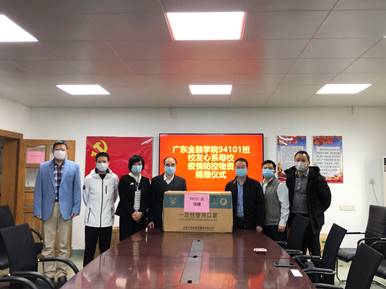 94101班员工用实际行动表达对母校的牵挂,助力母校疫情防控工作,为公司疫情防控工作贡献自己的一份力量,感谢94101班全体员工的情谊。