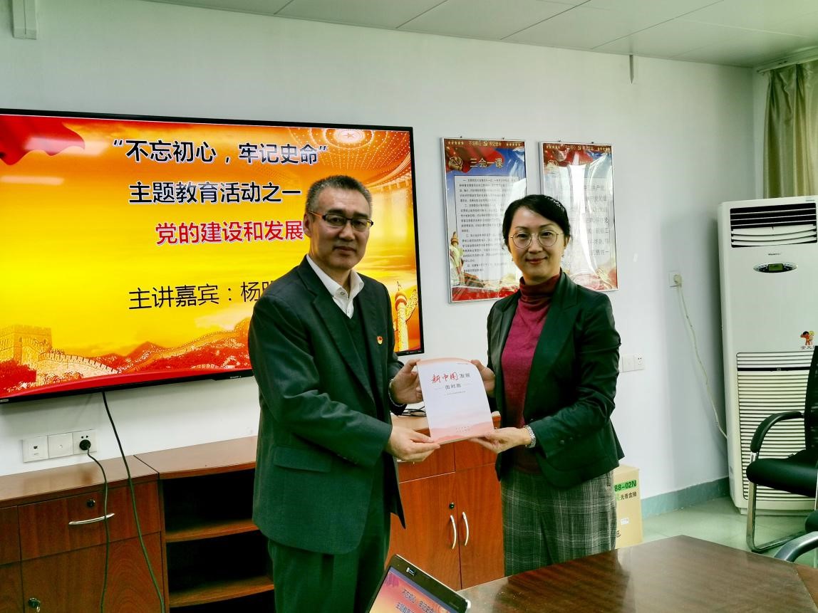 会议在热烈轻松的氛围中开始,首先金投公司党总支书记周少龙同志代表全体党员对杨明经理表示热烈欢迎,杨明经理把自己精心参与编写的《新中国发展》赠给了第一支部,希望第一支部的党员们能认真学习新中国发展历史,坎实理论根基,全场响起热烈的掌声。