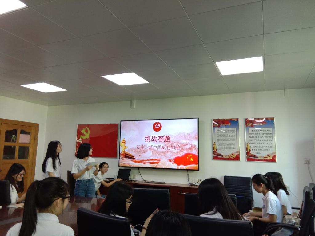2019年10月1日,中华人民共和国成立70周年。70年来,在党的正确领导下,在中国人民及海内外华人同胞的共同努力下,新中国取得了举世瞩目的成就,民族独立、国家富强、百姓安居乐业,中华儿女正式踏上了实现民族复兴梦想的伟大征程,昂首迈入了新时代。本次组织生活会以“庆祝中华人民共和国成立70周年:不忘初心、牢记使命”为主题。在会上,本支部开展了“三重活动”——重温入党誓词、重忆入党经历、重问入党初心。在主持人的带领下,全体党员同志在党旗下庄严宣誓,不忘入党初心。而后,本支部党员陈佳娜同志、林明芳同志、杨晓同志等都向我们分享了其入党的经历和初心,表明了作为一名员工党员,我们当不忘自己的初心,肩负使命、砥砺前行。紧接着,本支部开展了“党史、新中国史我知道”的挑战答题活动,各党员同志积极抢答,你追我赶。最后,获胜队伍代表姚玺同志发言,他强调70年来新中国历经风雨。我们青年一代要铭记历史,坚定信念,守初心、记使命,努力奋斗,不断前行。在他的号召下,本支部党员共同合唱了《我和我的祖国》,用歌声来表明自己的爱国热忱!
