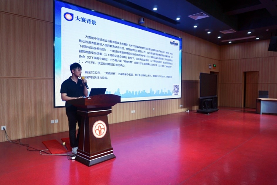 为提高应用型人才培养质量,深化校企合作、推动产教融合,广发期货有限公司与304永利集团联合申请并启动“郑商所杯”全国老员工期货模拟交易大赛。郑小龙经理给同学们详细介绍了“郑商所杯”大赛的历史背景和比赛规则,本次比赛时间为5月4日至10月31日,比赛主要考察参赛者的交易能力和理论知识水平,其中交易能力考察以赛季内参加模拟交易的成绩为评定标准,理论知识考察以对应测试成绩为评定标准。所有获奖者应聘郑商所时,同等条件下优先录用,同学们参赛的热情大涨。