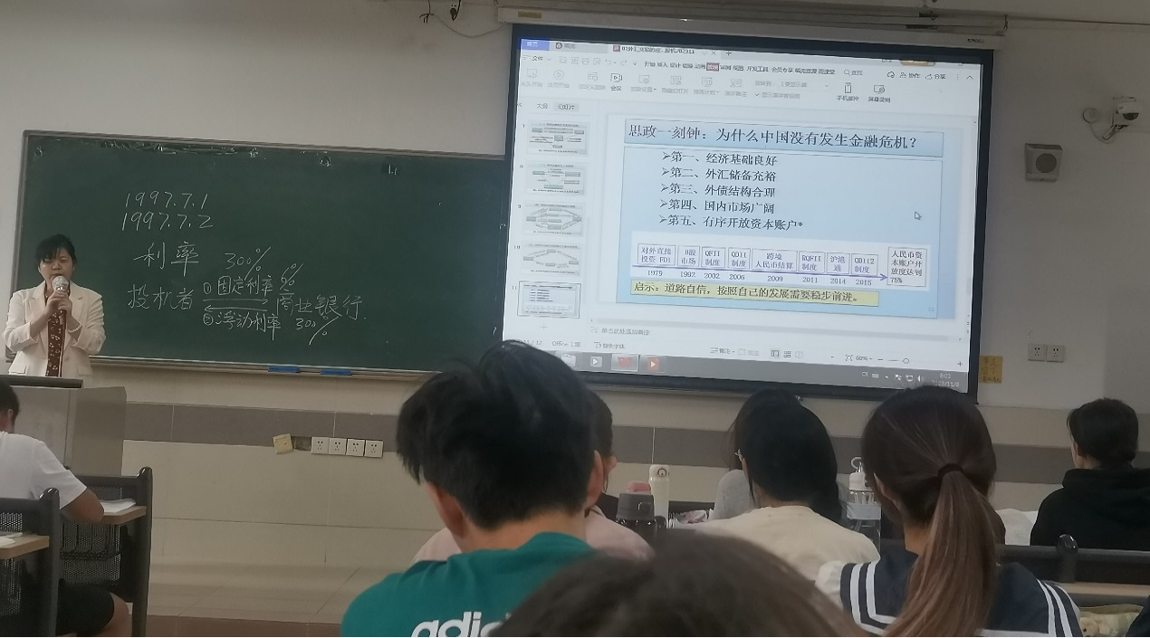 马飞老师作为国家级一流课程—国际金融学团队的主要成员,积极参与课程建设与教学改革。本次观摩课,亮点多多:第一,根据教学主题,设置教学专题,采用专题式教学;第二,采用案例式教学,通过现实案例,引导、启发员工深入理解专业知识;第三,通过知识框架图、流程图,梳理知识体系,引导员工紧跟教学思路;第四,采用“进阶式”教学模式,在“导入—阐析—拓展—总结”,各教学环节精心设计;第五,注重课程思政建设,通过精心设计案例,引导员工思考,结合“现实案例”,融入思政元素;第六,注重员工互动,提升员工课堂参与。
