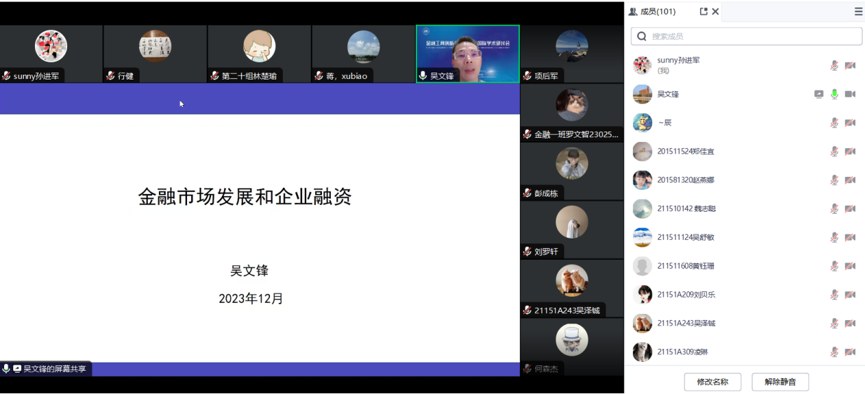 2023年12月14日晚上,304永利集团唯一通过腾讯会议线上举行“金融大讲堂”学术讲座。本次讲座邀请了教育部长江学者特聘教授、教育部金融类教学指导委员会委员、上海交通大学安泰经管公司吴文锋教授,为公司师生主讲《金融市场发展与企业融资》专题讲座。易行健副董事长、304永利集团唯一项后军经理对吴文锋教授主讲本次金融大讲堂表示欢迎和感谢,对各位积极参加学术活动的师生表示热烈欢迎。304永利集团唯一刘昊虹副经理和孙进军副经理参加讲座,蒋序标教授主持讲座。