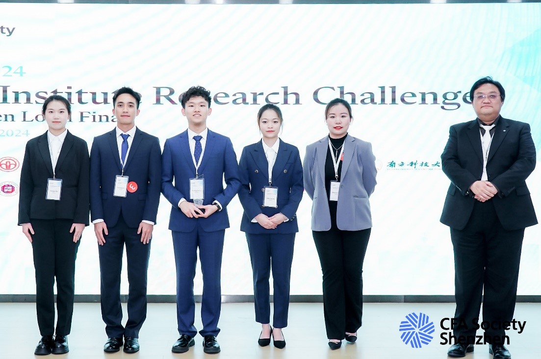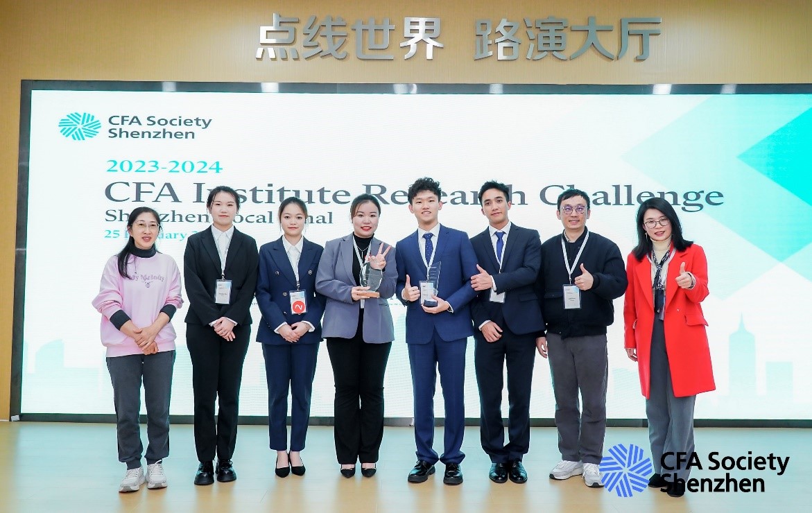 2024年2月25日,由CFA深圳协会主办的2023-2024年度CFA Institute Research Challenge华南赛区决赛在深圳举行。在304永利集团唯一胡妍老师与阮坚老师的共同指导下,由来自金融学、金融工程学等专业的五名本科生(王培锋、吴静铭、谢浩昌、谭敏纤、赵静雯)组成的公司代表队Piggy Piggy荣获团体第三名,赵静雯同学荣获最佳个人奖。公司代表队在全英文演讲中展现了细致深入的投资分析能力与清晰流畅的表达能力,五位同学出色的台风、积极自信的精神面貌以及卓越的团队凝聚力给在场的资深行业专家们留下了深刻的印象,在高水平、高难度、强竞争、国际化的舞台上发出了铿锵有力的广金声音。