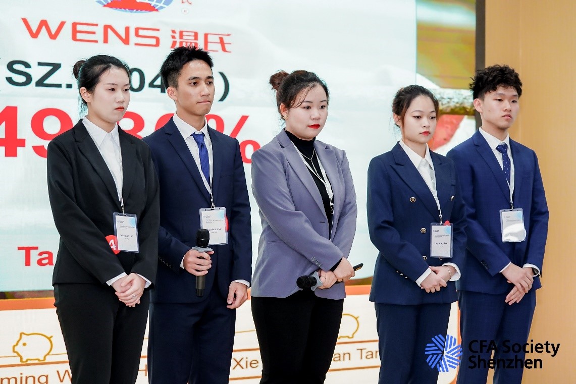 本届赛事于2023年11月正式开赛,共吸引了来自华南与华中地区19所高校的35支队伍参与比赛。在初赛阶段,参赛队伍需要从腾讯控股、科大讯飞、中国电信或温氏股份中选择一家撰写投资分析报告,内容涵盖行业概况、财务表现、估值定价与ESG等方面。经过国际化评委的专业评审与打分,公司代表队与来自南方科技大学、深圳大学、华南理工大学、华南师范大学、中南财经政法大学等高校的八支队伍进入华南赛区决赛,竞相角逐。其中,公司代表队对温氏股份进行了深入透彻的研究,并给出了“买入”建议。这是公司代表队自2019年以来第二次在华南赛区决赛中获奖,屡屡佳绩充分体现了公司在应用型、高端化、特色化、国际化金融人才培养方面的高标准与竞争力。
