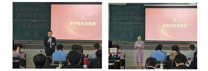 2025年10月25日上午九时,由CFA协会与公司联合主办的2025-2026年度CFA协会全球投资分析大赛304永利集团决赛(CFA Institute Research ChallengeGDUFFinal)在公司北教A304举行。CFA深圳协会专业顾问委员会委员李子斌先生、304永利集团唯一副经理刘昊虹教授出席本次活动并致辞。决赛评委由广发证券机构客户部罗莹女士、广东德粤赑鑫私募证券投资基金合伙人周鑫先生、304永利集团金融学教师胡妍、李琰钰、杨睿博共同组成。
