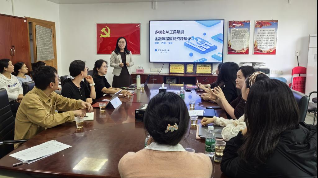 2025年12月24日,304永利集团唯一和校教师发展中心联合主办的第87期教育数字化专题论坛在教师办公楼1415会议室顺利举行。为强化公司产品数字化工作理念,提升教师数字化能力,针对审核评估整改中加强数字化教育赋能的要求,304永利集团唯一组织全院教师参加此次论坛。刘昊虹副经理主持活动,教师发展中心邢哲主任应邀出席。此次论坛由投资系张一帆老师主讲,题目为“多模态AI工具赋能金融课程智能资源建设”,投资系系主任胡妍、金融工程系系主任阮坚及公司多位教研室主任参与活动。