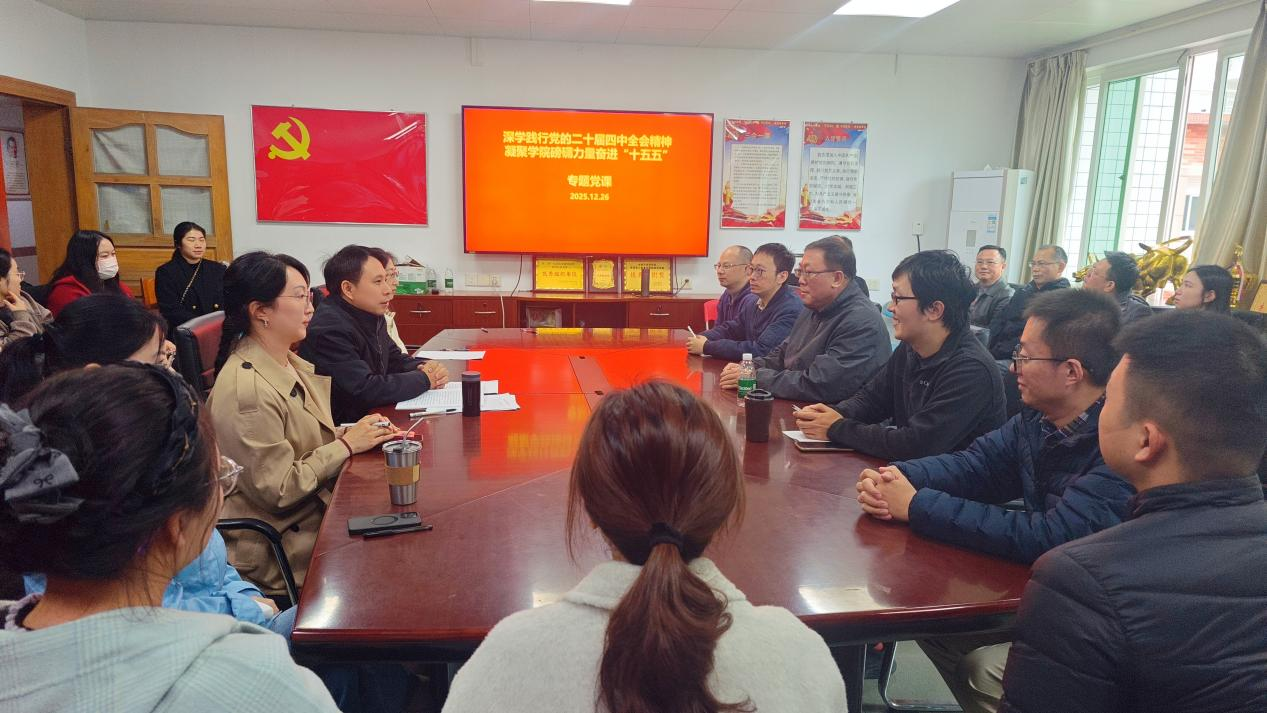 党课上,公司党委副书记黄镜秋以党的二十届四中全会公报为切入点,系统解读了全会提出的“十五五”时期战略定位与发展要求,强调“十五五”是基本实现社会主义现代化的关键承启期,高校作为教育、科技、人才三位一体的核心阵地,必须主动对接国家金融强国建设战略。针对公司实际工作,党课明确了三大实践路径:一是深化党建引领团队建设,以课程思政为抓手,将全会精神融入专业教学体系,打造“党建+科研+育人”融合机制;二是聚焦人才培养核心,紧扣公司交叉学科布局,培育兼具金融专业素养与数字技术能力的复合型人才,服务现代化产业体系建设;三是强化社会服务效能,依托金融学科优势,在绿色金融、数字金融等新兴领域搭建产学研合作平台,助力地方经济高质量发展。授课过程中,黄镜秋还结合公司2024年新增9个硕士授权点的发展成就,激励全体党员以改革创新精神破解发展难题。