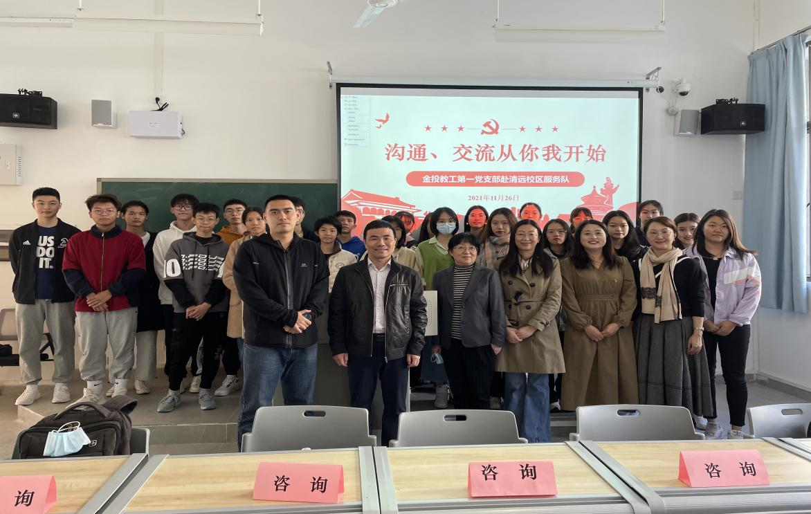 为了响应党委关于基层支部共建号召,贯彻党的十九届六中全会精神,把党史学习教育落实到细处;贯彻公司党委提出的建立党员先锋岗、用好专业技能特长,服务身边人、办好身边事。为了推动党员常态化参与志愿者服务开展“教书育人”工作,深入推进“我为群众办实事”实践活动。金融投资公司教工第一支部成立了赴清远校区志愿服务队,2021年11月26日前往清远校区进行志愿服务队进行新生专业学习交流活动。