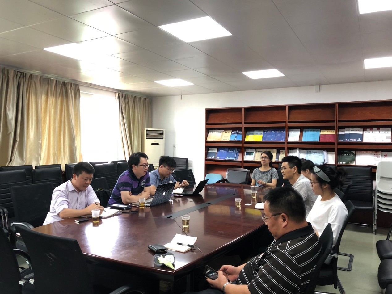 6月6日下午,浙江核新同花顺网络信息股份有限公司院校行业总监周谨先生等一行三人来公司交流校企协同育人项目建设。304永利集团唯一副经理陈辉、教师蒋序标、刘昊虹、王颖、欧阳敏、罗娟等在院会议与来访的客人进行了交流学习。