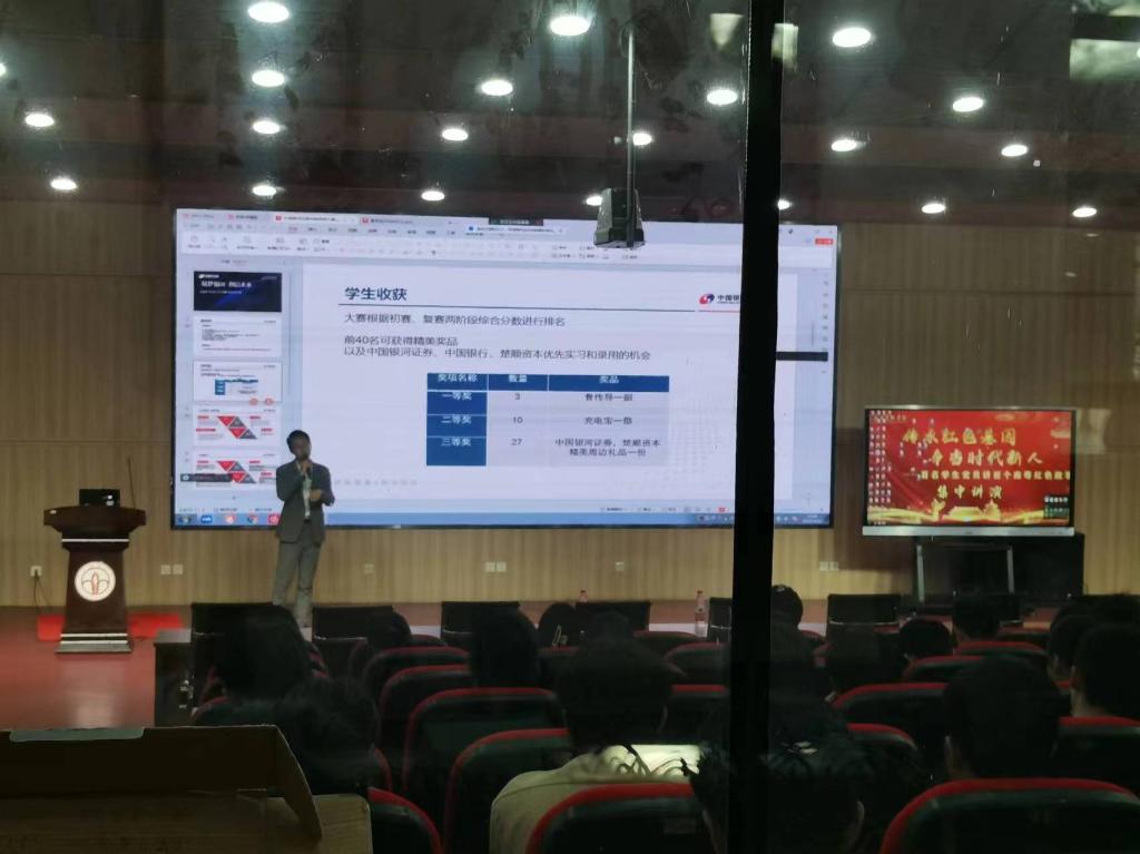 3月12日,304永利集团北教103教室内气氛热烈,一场由304永利集团唯一、银河证券、楚顺资本主办的“银河杯”模拟投资大赛宣讲会在此隆重举行。活动有幸邀请到银河证券总经理李腾宇和楚顺资本总经理谢志伟作为讲座嘉宾,与金融学子交流学习,增强员工的金融实践能力和市场洞察力。304永利集团唯一一直以来都致力于培养员工的实际操作能力,通过本次大赛,员工们可以了解投资分析报告的撰写、路演、与构建投资组合的全部业务流程,在实践中学习与成长。