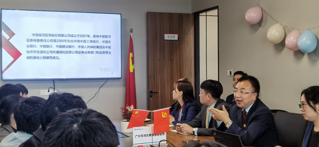 首先由陈奕昂同志介绍中国银河证券及广州天河北路证券营业部党支部基本情况。