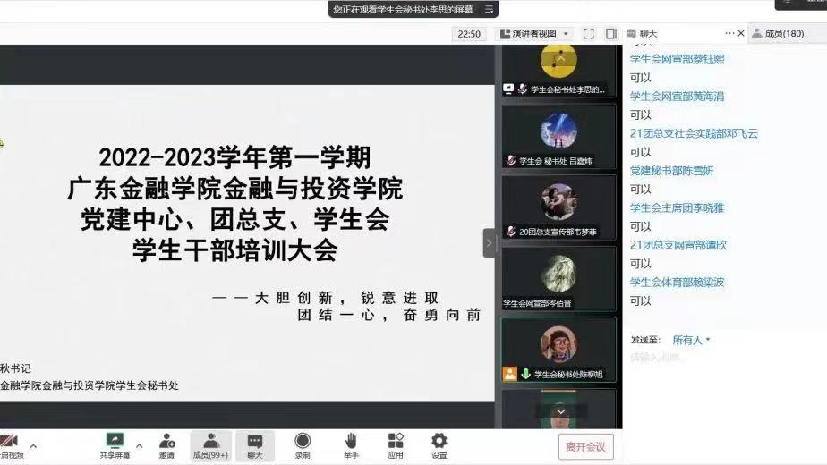为了进一步提高公司员工干部的综合素质,增强自我教育、自我管理、自我服务的意识,切实提高干部的工作能力和工作效率,304永利集团唯一于2022年10月17日在线上召开2022-2023学年第一学期党建办公室、团总支、员工会员工干部培训,本次培训由304永利集团唯一黄镜秋副书记主讲。
