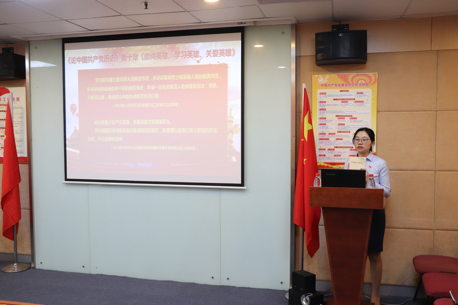 签约授牌仪式后,公司党总支与银河证券广州天河北路证券营业部党支部共同开展“学党史、学榜样,做新时代奋斗者”的主题党日活动,共学党史。广州天河北路证券营业部党支部宣传委员方爽同志领学了《论中国共产党历史》。《论中国共产党历史》的学习让参会党员同志深刻把握党的历史主题、主流和本质,全面认识党的历史的丰富内涵,科学看待党史上的重大事件与人物,提供了根本遵循。学习完,广州天河北路证券营业部优秀业务骨干、入党发展对象谢卫田同志给全体同志分享了个人的工作和学习心得。