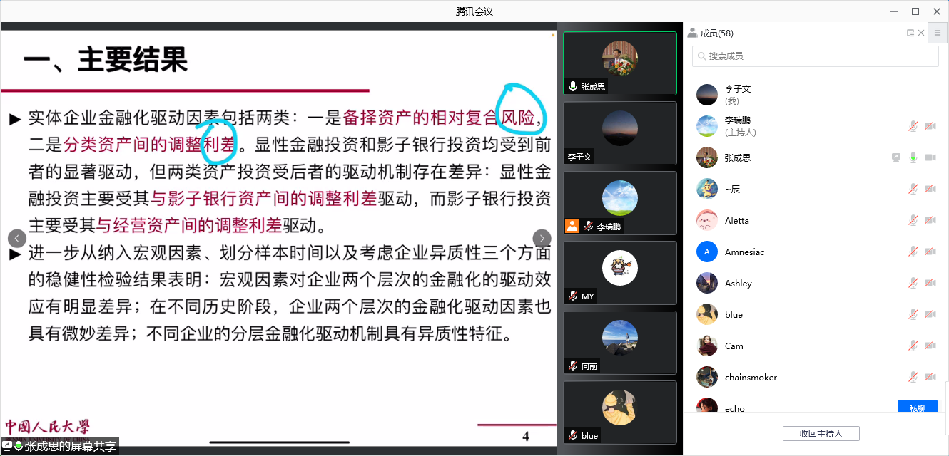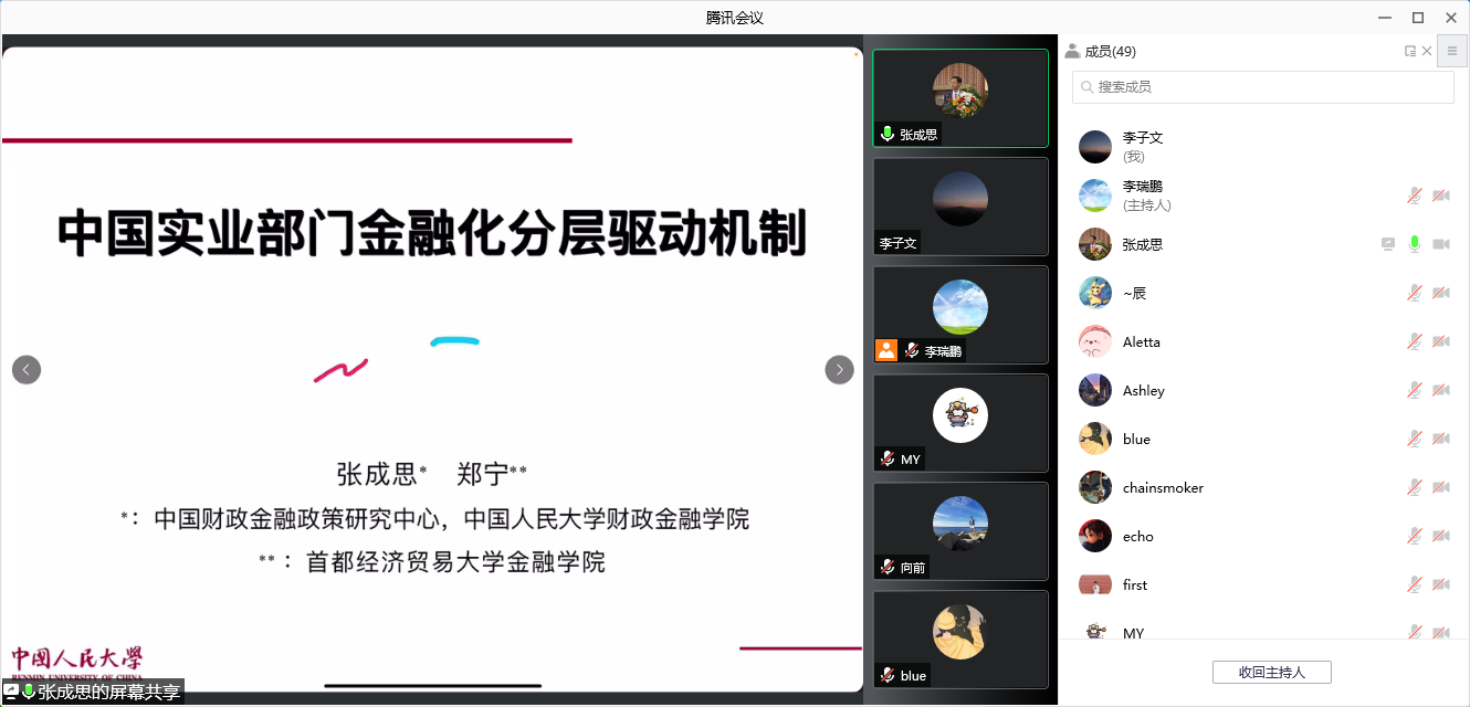 2021年12月1日晚上,304永利集团唯一通过腾讯会议线上举行了2021年第6期金融学前沿Workshop,受邀嘉宾中国人民大学财政金融公司副经理张成思教授为公司师生做了金融学前沿研究的主题讲座。