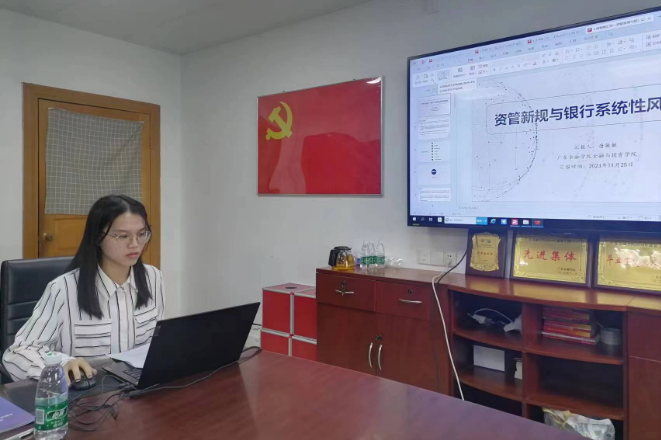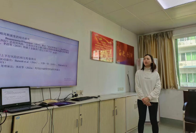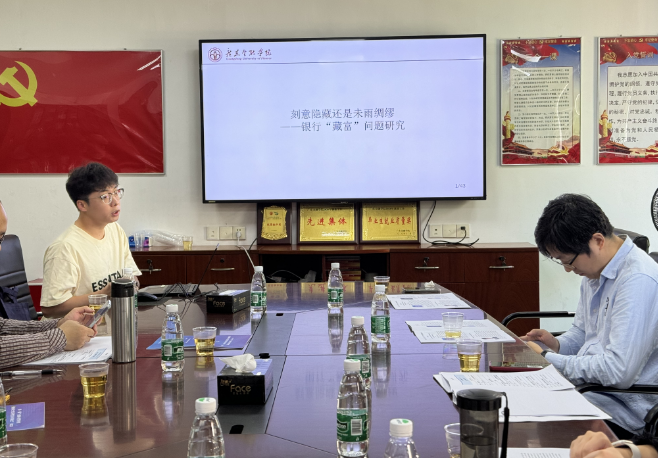 公司22级金融硕士研究生唐敏敏汇报了与郑荣年副教授合作撰写的论文,通过对《资管新规》政策效果的探讨,对于完善我国金融监管体系具有一定的借鉴意义。南京农业大学金融公司张翔博士研究生在实证检验、测度指标、文章细节等方面提出了修改建议。