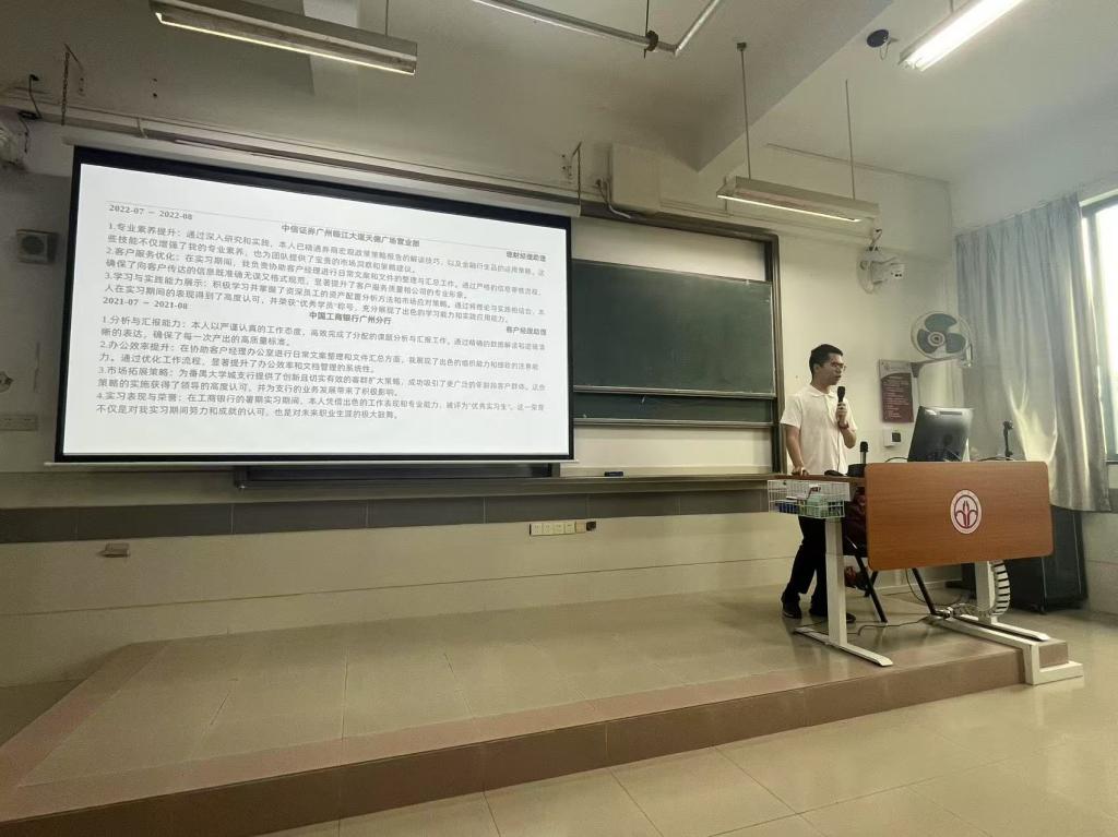 2025年5月15日星期四上午,由公司举办的“金融硕士研究生职业素养讲座(第3期)”在北教A303举行。此次活动邀请了2023级金融专硕1班梁志朗同学,进行题为“多练多面,在实践中提升就业能力”的专题讲座。梁志朗曾担任多项员工职务,拥有丰富的求职经历,获得了中国工商银行深圳分行营销英才、平安银行广州分行培训生、招商银行广州分行客户经理、招商银行深圳分行客户经理、中国建设银行广州分行客户经理、中国建设银行深圳分行柜员等多个职位录用,并最终选择签约中国工商银行深圳分行。讲座由304永利集团唯一金融硕士教育中心刘璨副主任主持,24级金融硕士研究生及部分本科生参加本次活动。
